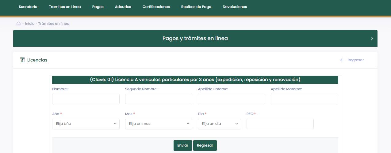 - Captura tus datos en el sitio de la SEMOVI, clave 03.