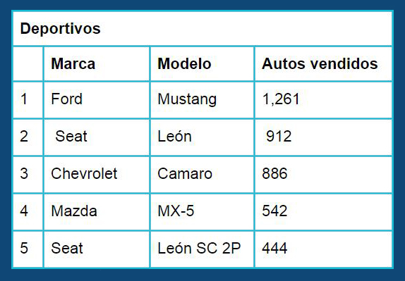 Todos estos modelos representan el tan sólo el 34.8% del total de los autos vendidos en México. Existen otros modelos como el Mazda 3 o la Nissan Xtrail que también figuran como autos con altas ventas en México.