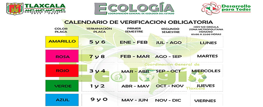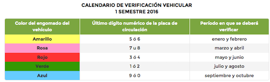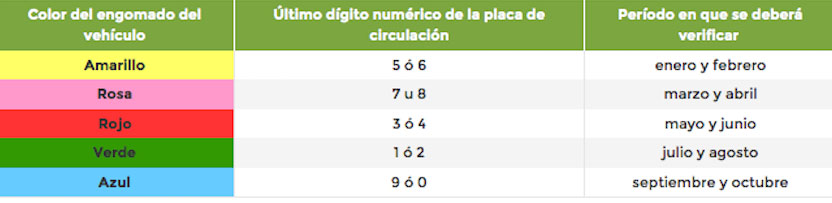 El calendario de verificación vehicular para el estado de Oaxaca es el mismo que el de la Ciudad de México.